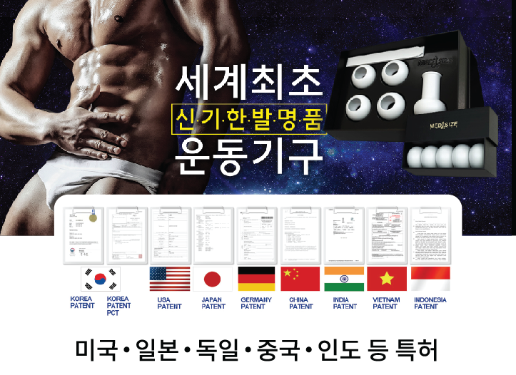 메디사이즈(구) JP생활건강은 남성건강운동기구 7개부문에서 세계특허 등록. 혁신적인 남성운동기구의 기술력을 인정받은 발명 특허제품입니다.